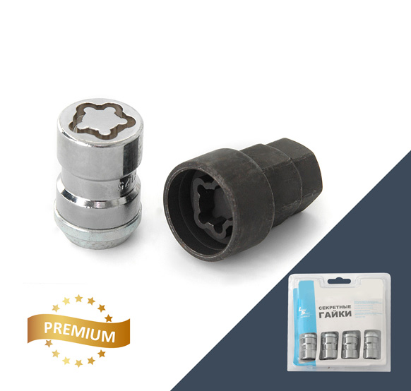 | Гайка | 43700SP | Хром | Секретные гайки (конус PCD) 4 шт +2 ключа | M 12x1.5 | 27 |